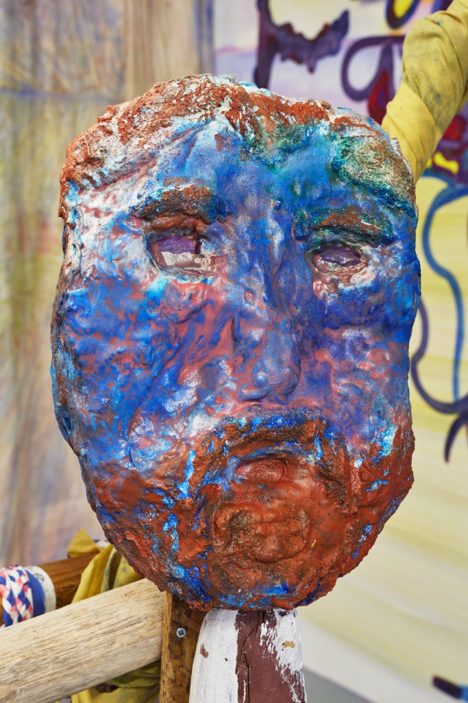 Quand je me questionne par rapport à ça, je sais que ma place dans l’art est politique en réalité. Le fait même que moi, fils d’ouvrier, ancien ouvrier, avec une partie de ma famille afrodescendante, je sois sur cette plateforme qui me permet d’exister en tant qu’artiste, c’est politique. C’est être sorti de ce que j’aurais pu faire toute ma vie. Si je peux permettre à d’autres personnes de se rendre compte qu’eux aussi peuvent le faire, je trouve que c’est déjà un engagement politique. Après, dans ce que je montre, il y a la place pour y voir un geste politique à certains endroits. En réalité, je me suis rendu compte que je n’essaye pas de convaincre qui que ce soit. Affirmer des choses alors que la plupart des personnes qui vont venir voir l’exposition sont déjà convaincues… Le réaffirmer dans un espace artistique ne fera pas changer les consciences. Cela ne va pas toucher les personnes à qui on devrait faire changer d’avis. Je trouve que l’action politique est dans la rue, dans la vie. J’aime l’idée que les espaces d’exposition, de création, soient aussi des endroits qui permettent justement de croire encore en la vie, d’avoir encore espoir, d’imaginer, de se réunir, d’avoir un moment convivial de discussion, plus que de marquer ma création d’une conviction politique. J’aime l’idée de prendre comme prétexte une exposition pour, après, créer des discussions, des débats. Le militantisme est bien plus puissant dans des actions concrètes, dans la vie quotidienne. Et pour cette exposition, même si je m’attache à l’image de l’épouvantail, je m’en écarte aussi volontairement pour parler du masque, du pantin ou de toute représentation humaine qui pourrait faire partie d’une imagerie populaire de l’autoportrait.