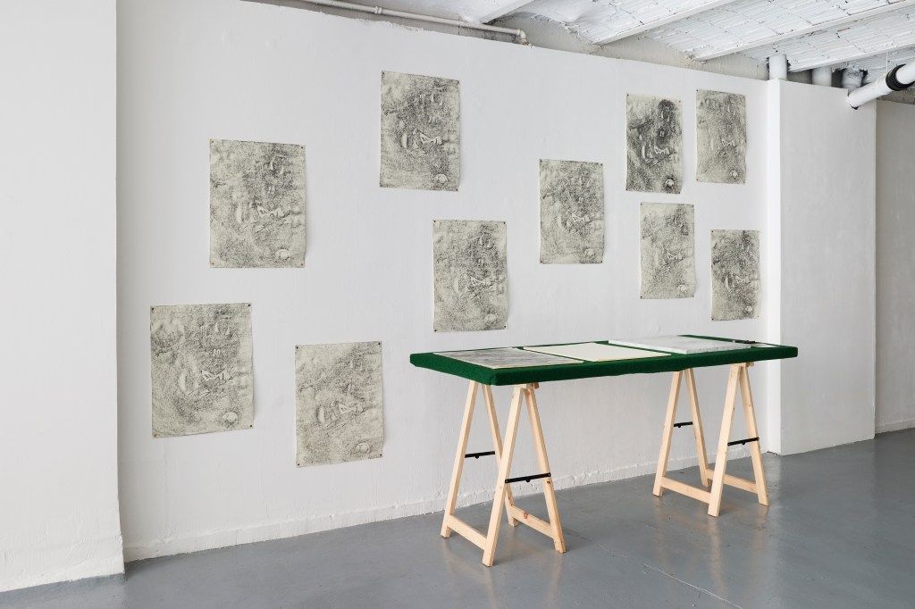 Pour finir la visite de l’exposition, est-ce que tu peux nous parler de tes gravures ? Est-ce que c’est une autre façon d’aborder le dessin, dans la multiplication de l’observation ?